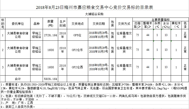交易時間和地點(diǎn):2018年8月23日(星期四)上午10時。廣東省梅州市彬芳大道南161號梅州市糧食交易中心3樓。
