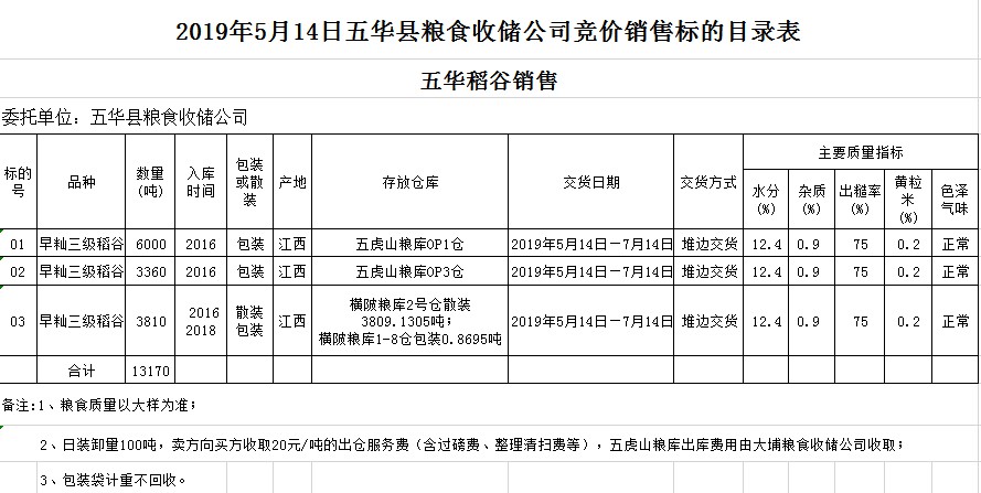 交易時間和地點:2019年5月14日(星期二)上午10時。廣東省梅州市彬芳大道南161號梅州市糧食交易中心3樓。