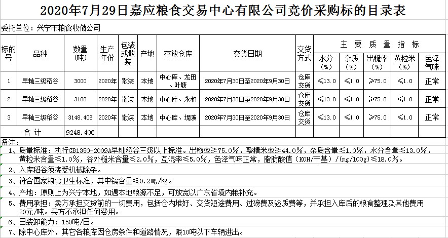 受客戶委托,梅州市嘉應(yīng)糧食交易中心有限公司定于2020年7月29日(星期三)舉辦糧食競(jìng)價(jià)交易會(huì),興寧市糧食收儲(chǔ)公司擬采購(gòu)2020年早秈稻9248.406噸。