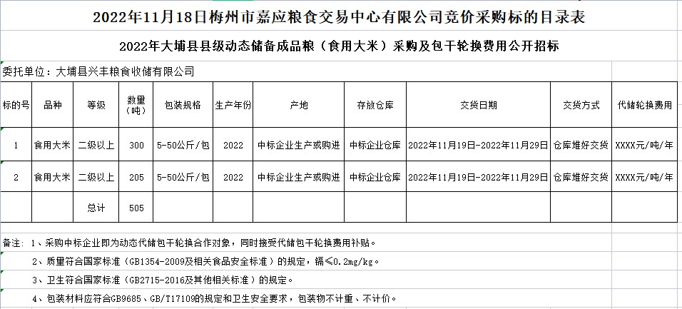 2022年大埔縣縣級動態(tài)儲備成品糧采購及包干輪換費用公開招標(biāo)公告